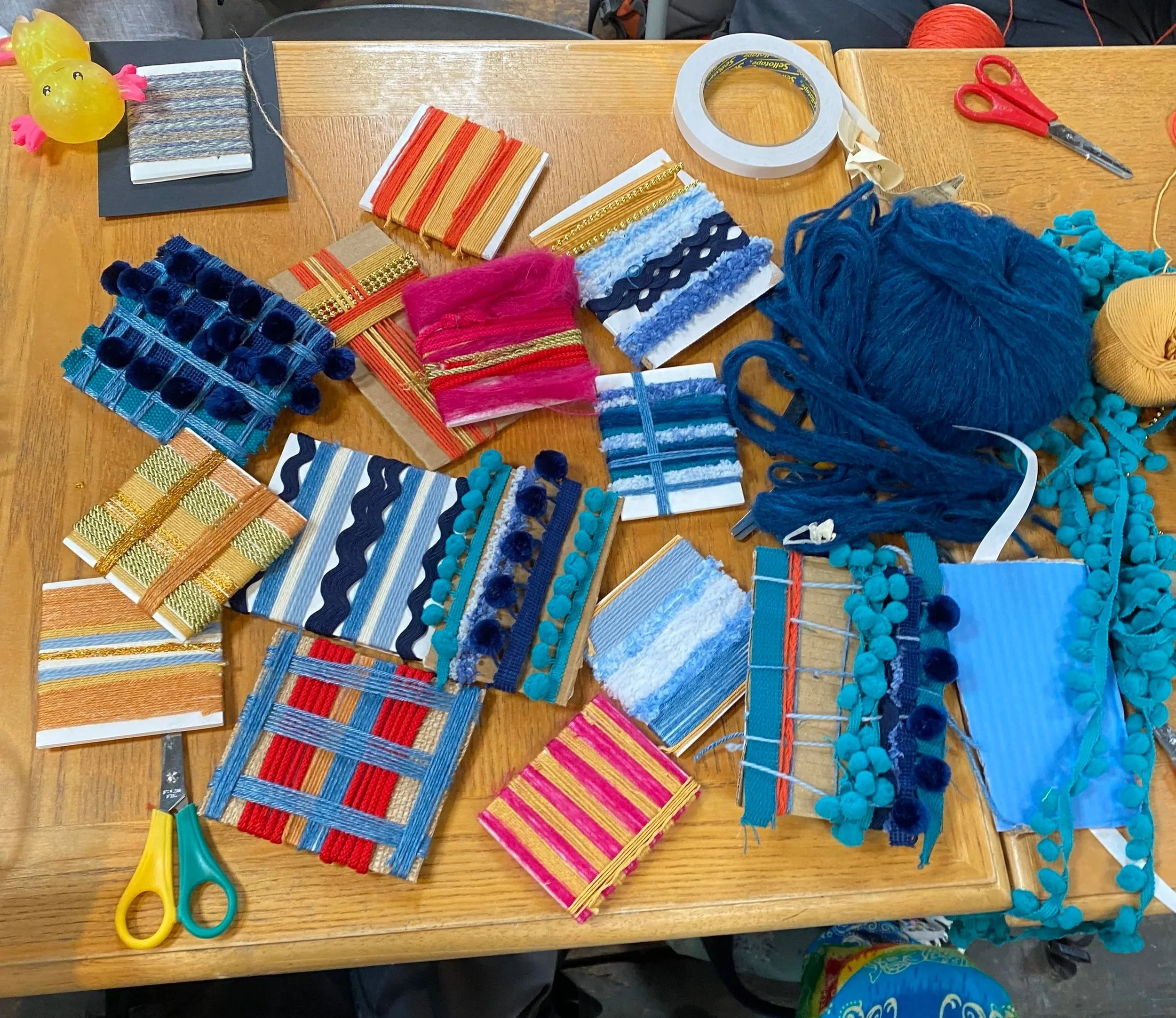 I provided participants with some samples and yarn wraps from my portfolio as well as a variety of yarns and we started with a sensory exploration activity and discussed the textures and colours we did and didn’t like and why.